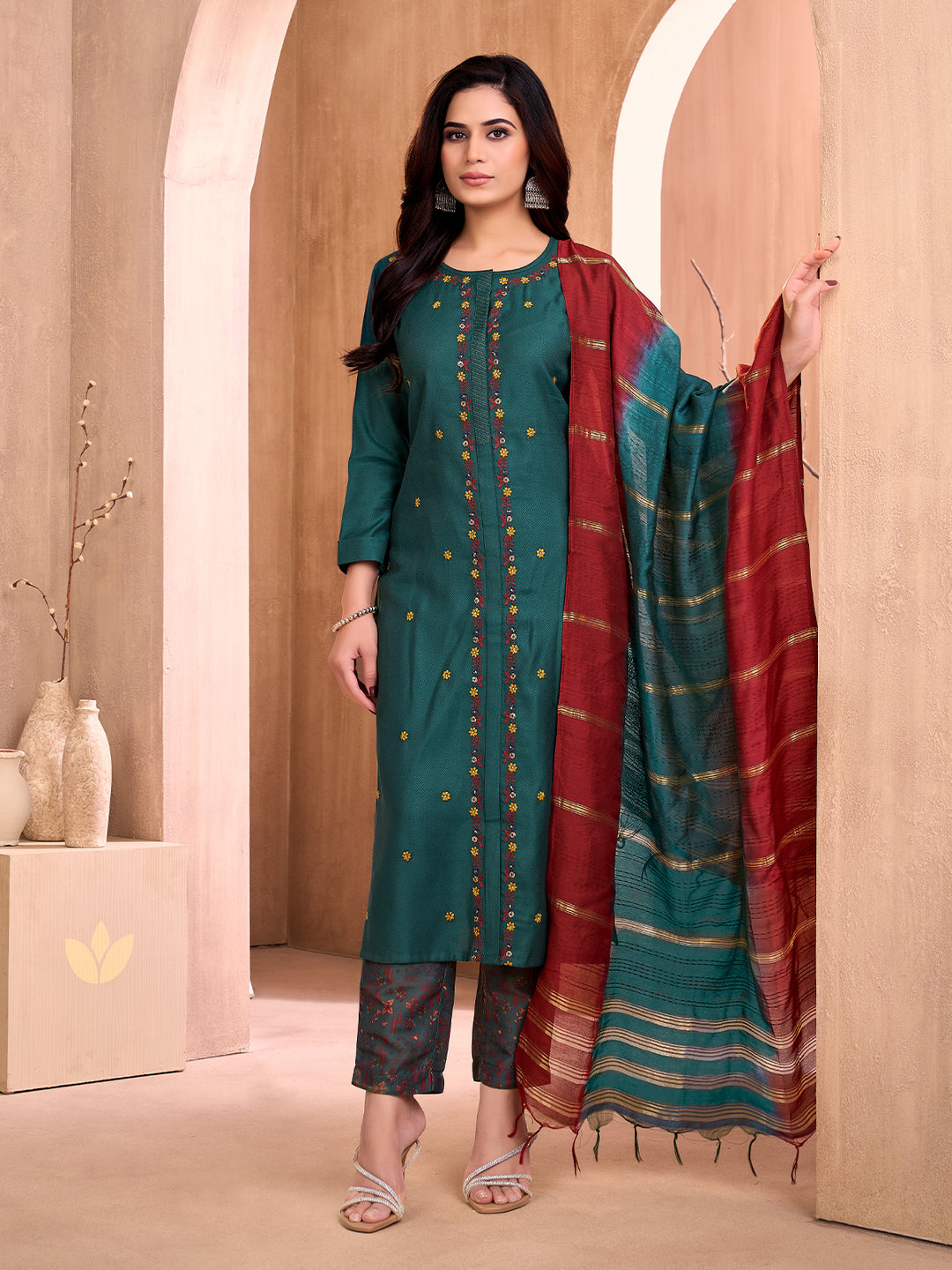 The Mihika Festive Collection showcases elegant ethnic ensembles crafted from luxurious jacquard and tissue silk fabrics, designed to bring a refined festive charm to traditional wear. These outfits combine graceful silhouettes with rich textures, making them ideal for weddings, celebrations, and festive gatherings.