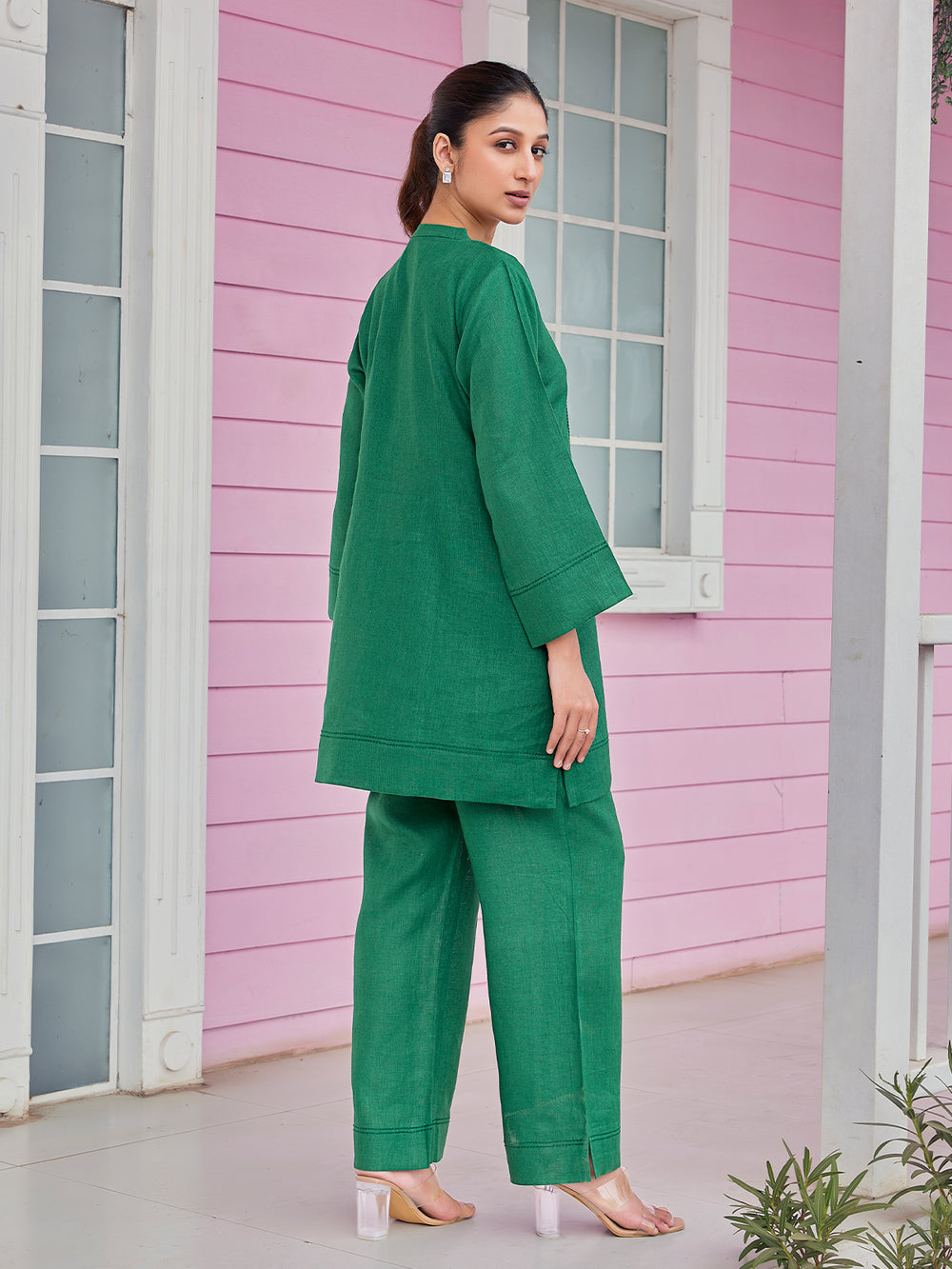 The collection features premium jacquard and tissue silk, known for their lightweight feel and subtle shimmer. Tissue silk offers a delicate metallic sheen that enhances the festive look, while jacquard weaving creates intricate patterns directly within the fabric, adding depth and a luxurious finish to the garment.