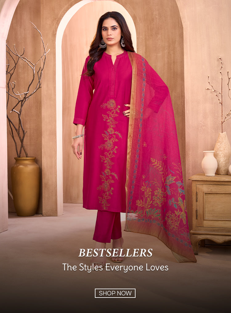 Our ethnic clothing comes in a wide range of colors, fashionable cuts, modern styles, and exquisite quality. And the number of styles you may make with our extensive inventory is only limited by your imagination. With Indian ethnic clothing comes an inherent charm. Our ethnic wear labels provide you a wide range of fashionable ensemble options for ladies that are inspired by historical fashion customs and contemporary styles from throughout the world.