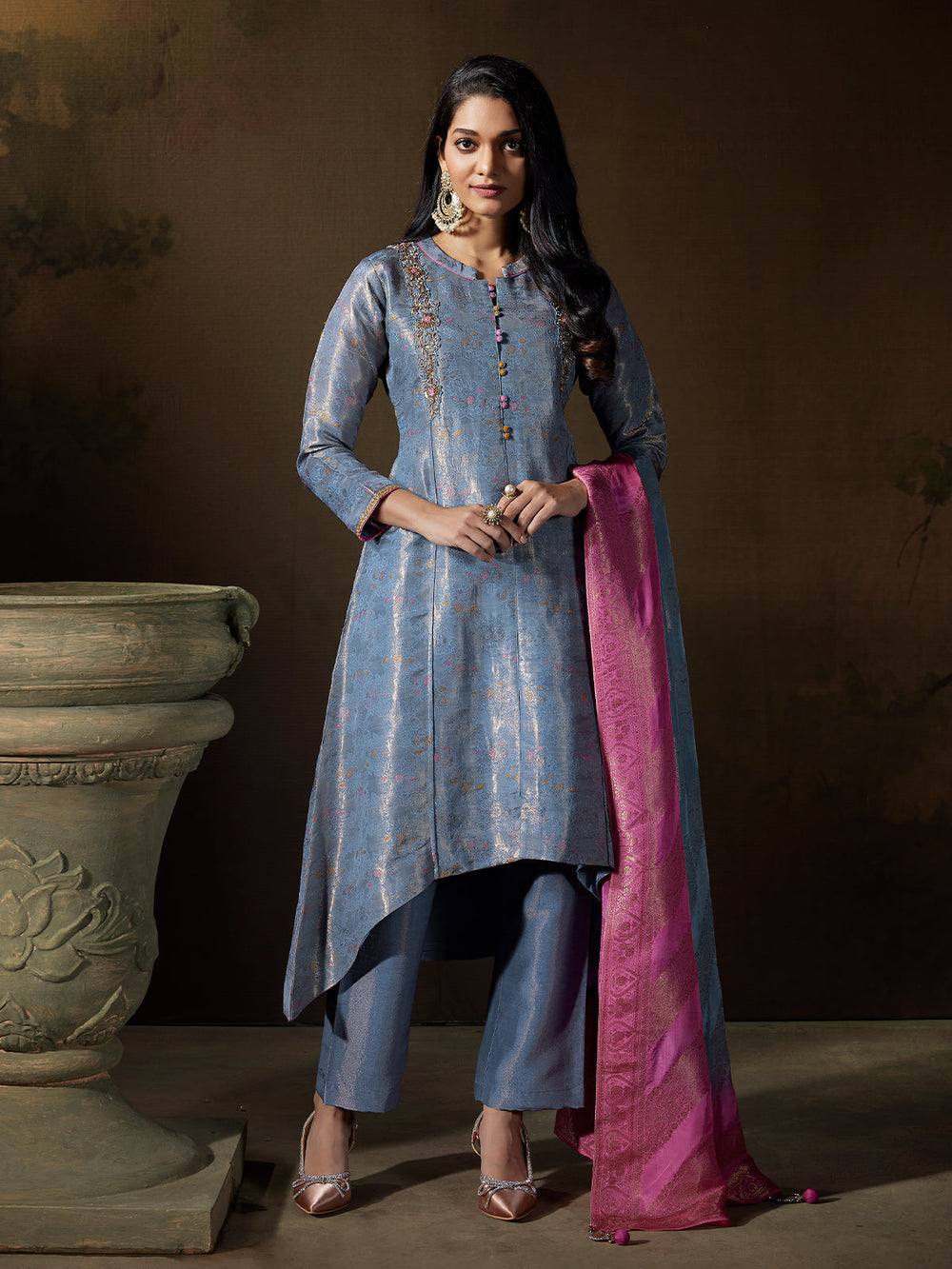 Pearl Grey Jacquard Suit Set