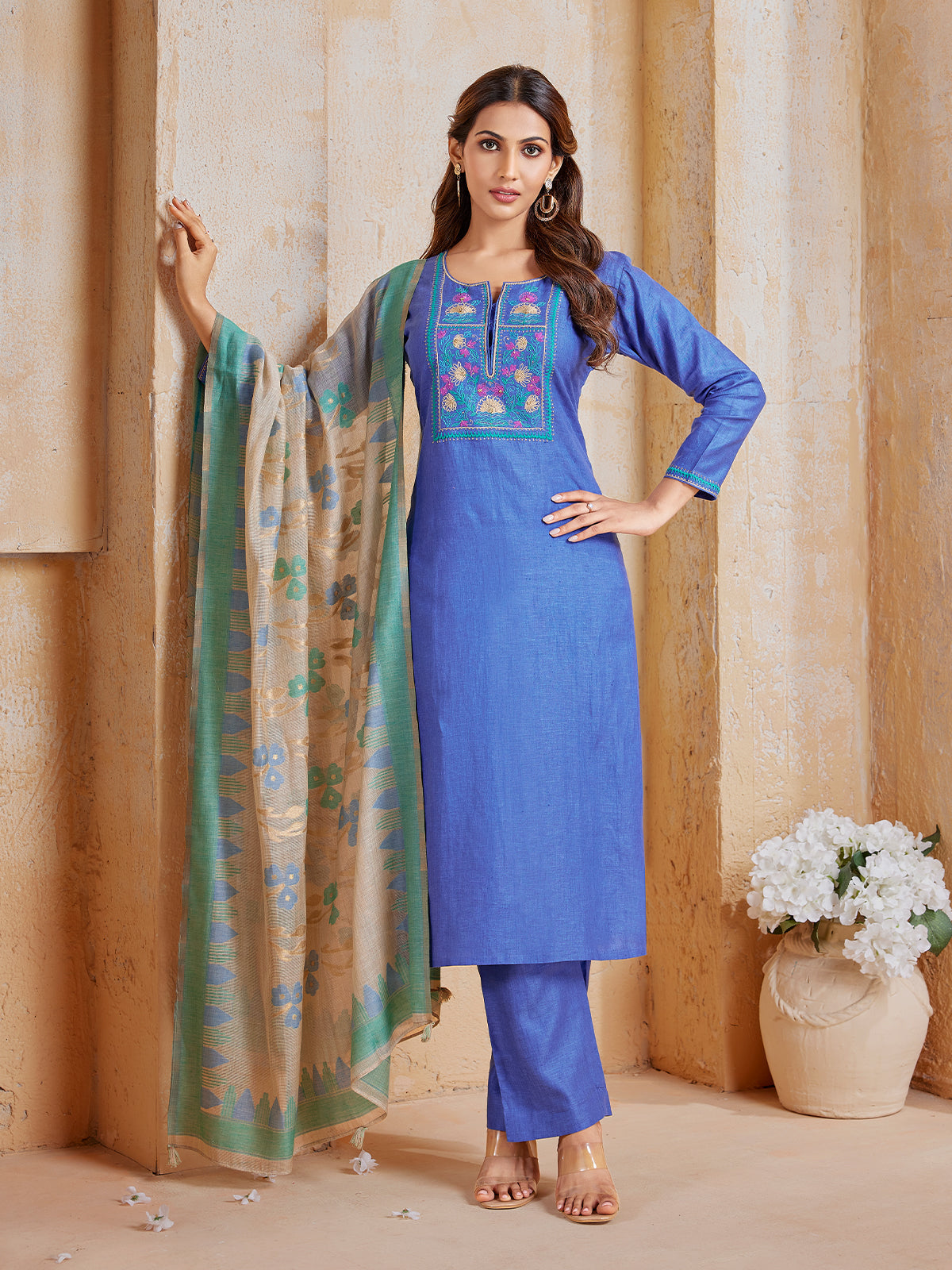 A serene, elegant kurta-dupatta ensemble that captures the beauty of modern Indian wear for women.