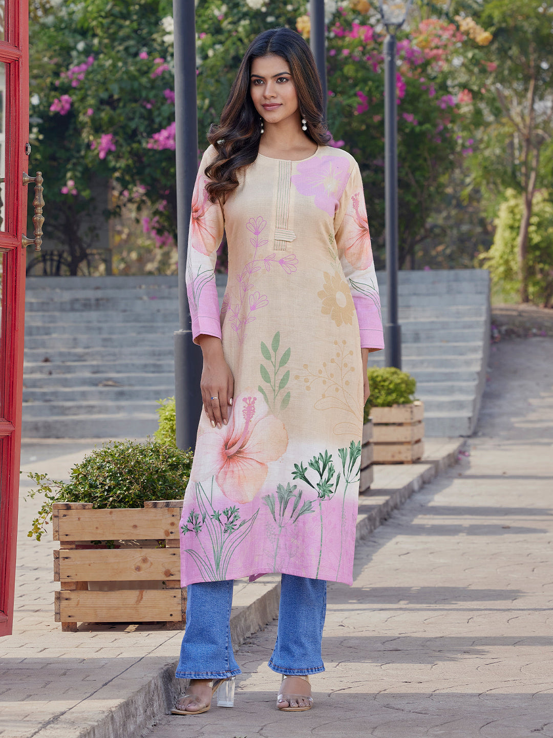 Warm Beige Floral Print Kurti