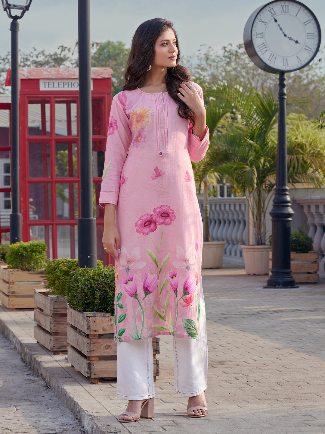 Blush Pink Floral Cotton Kurti