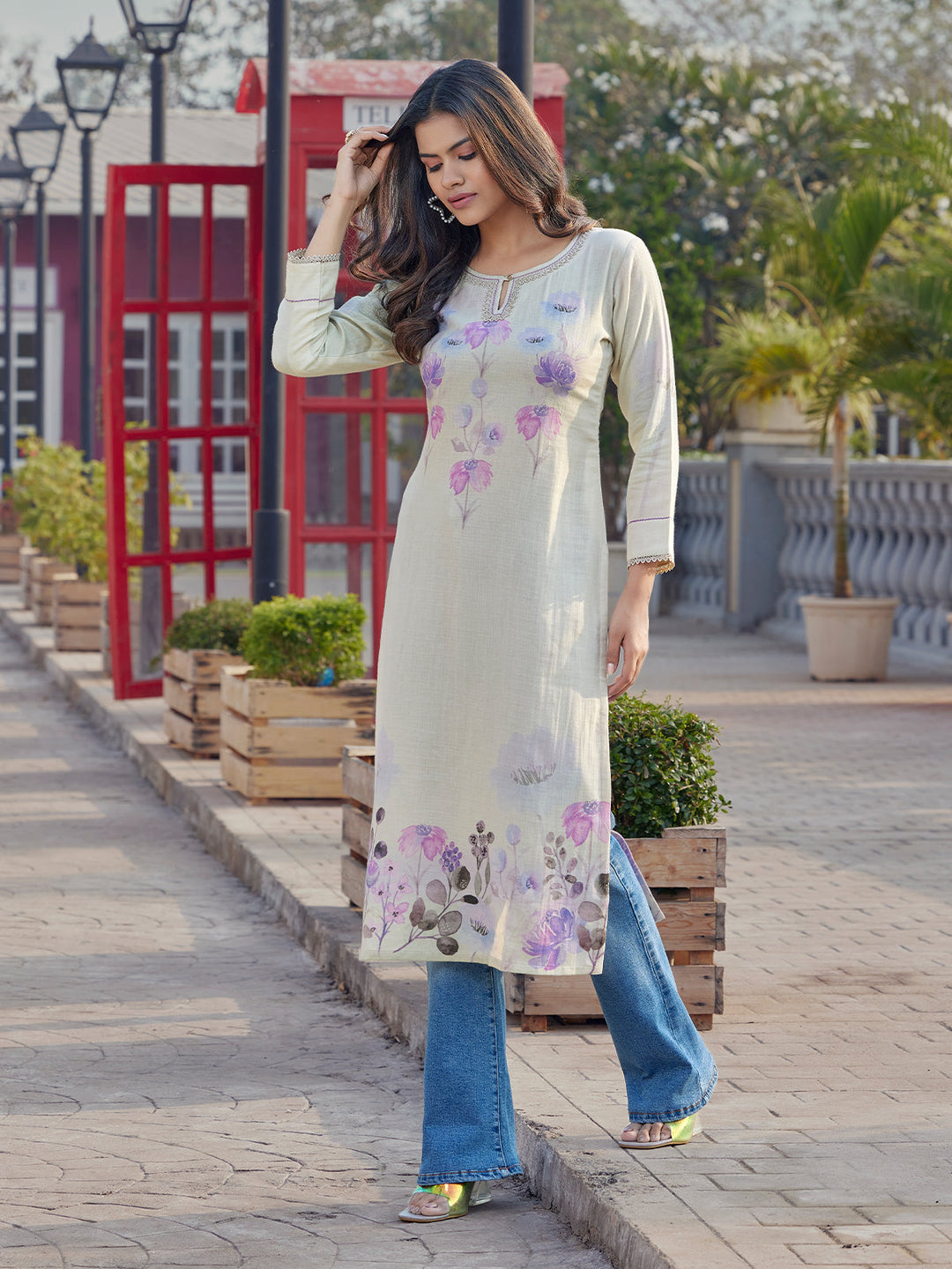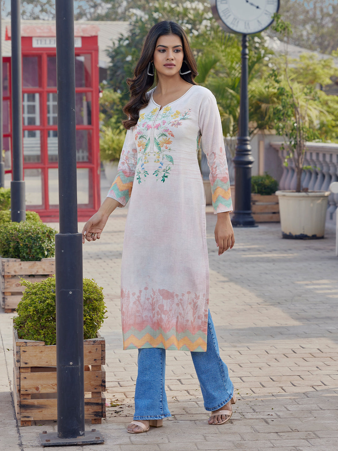 Fresh Ivory Floral Print Cotton Kurti