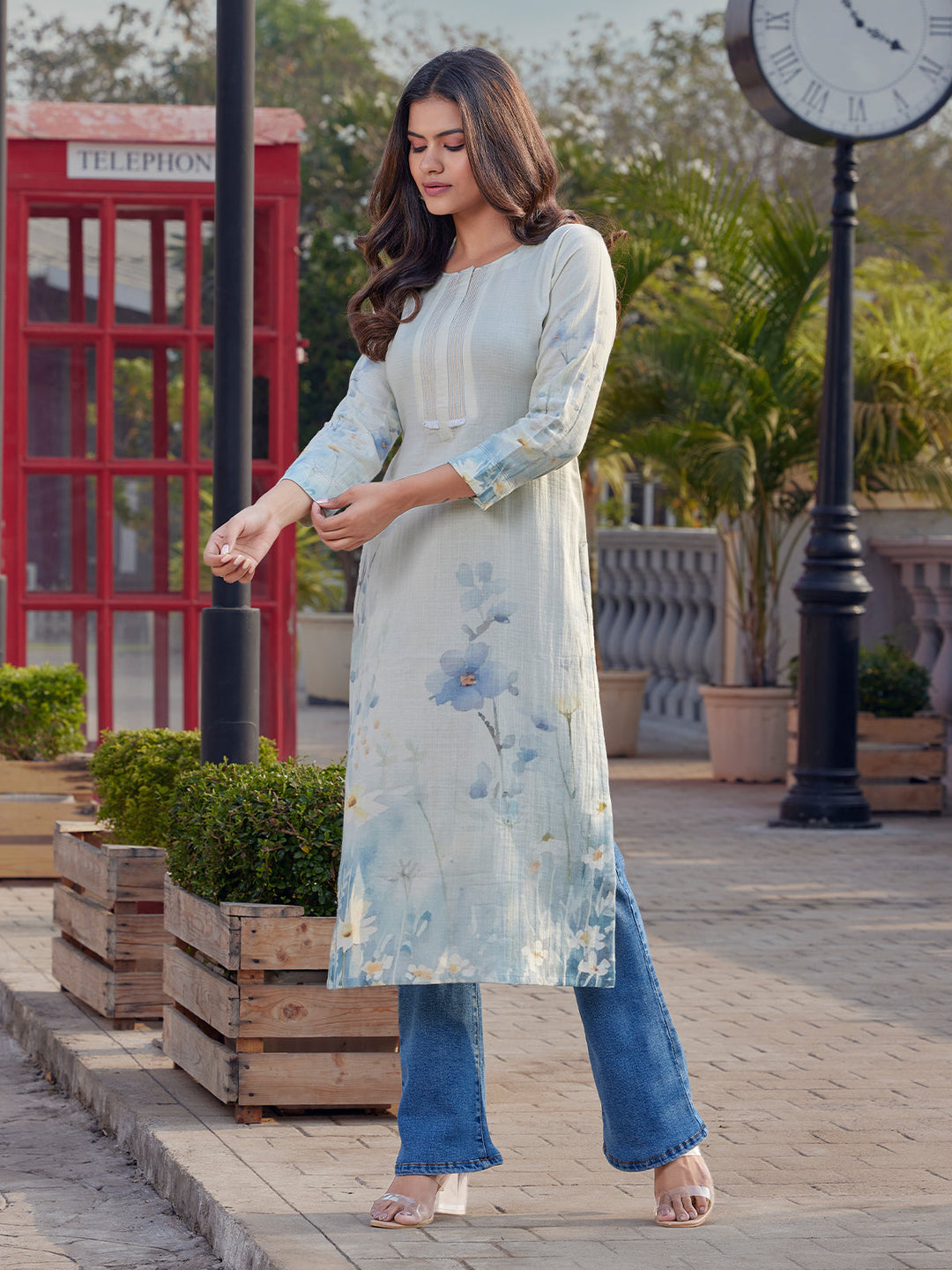 Blue Hue Floral Print Cotton Kurti