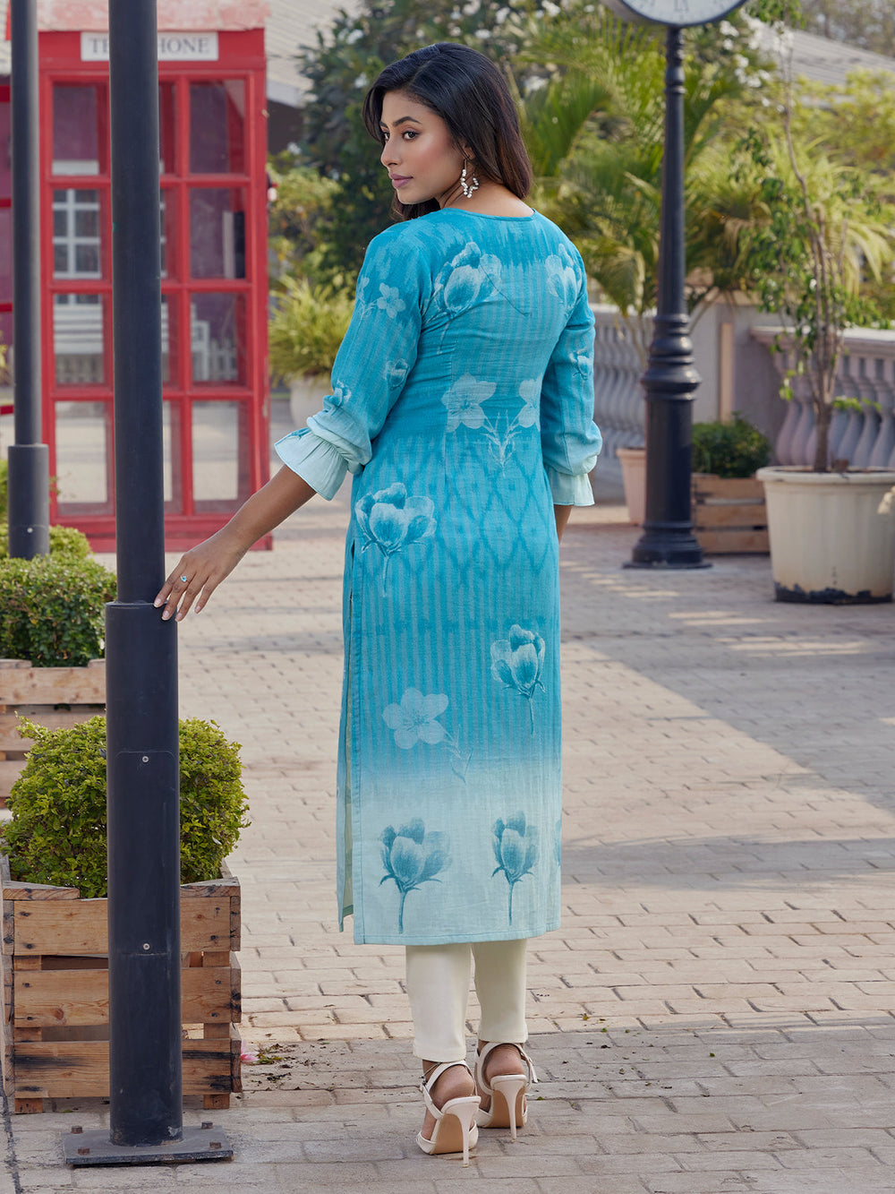 Aqua Floral Print Cotton Kurti