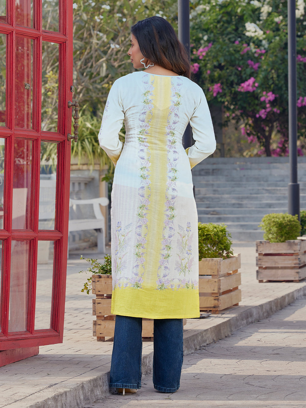 Butter Yellow Botanical Floral Print Kurti