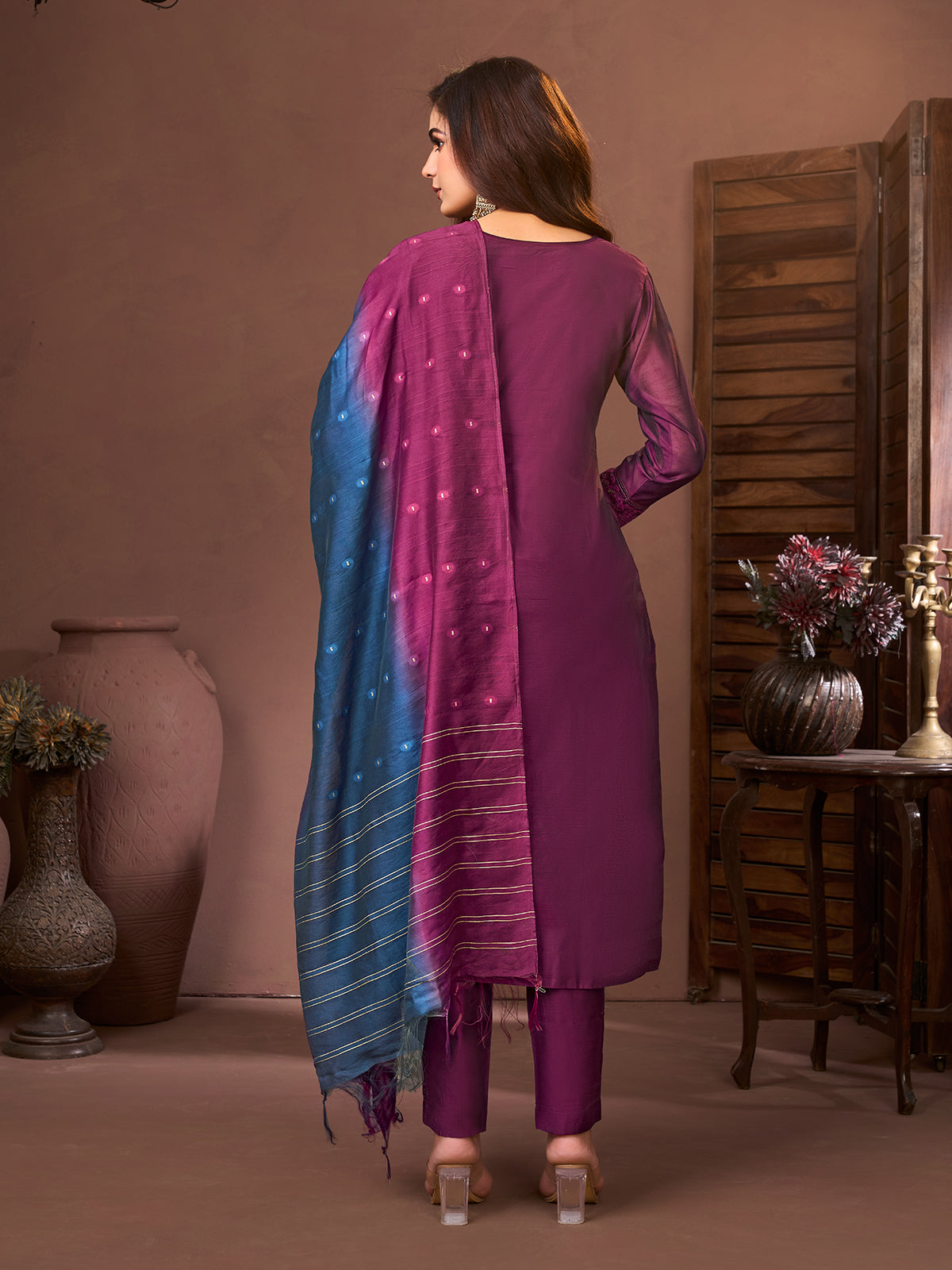 Regal Purple Chanderi Suit Set