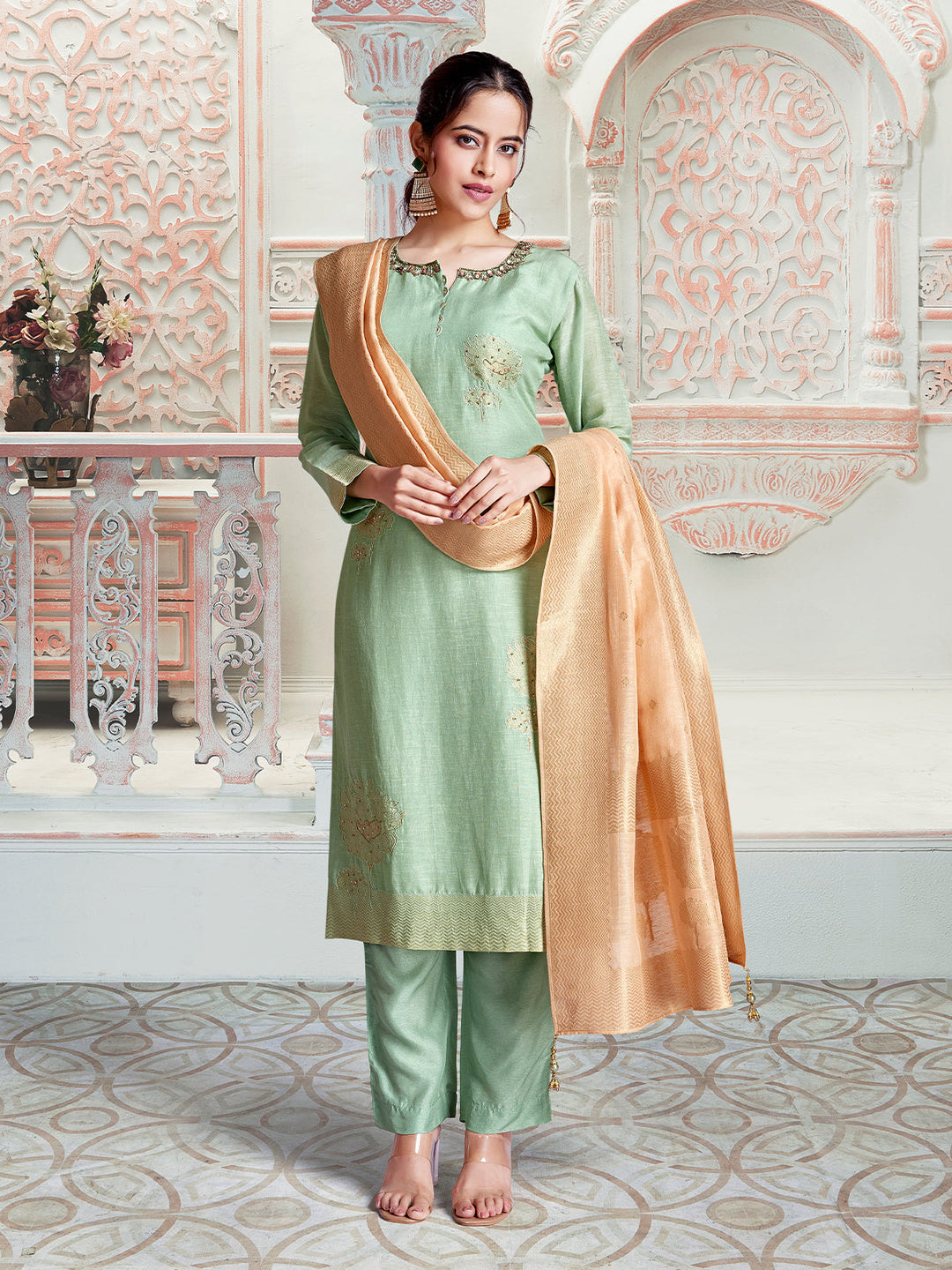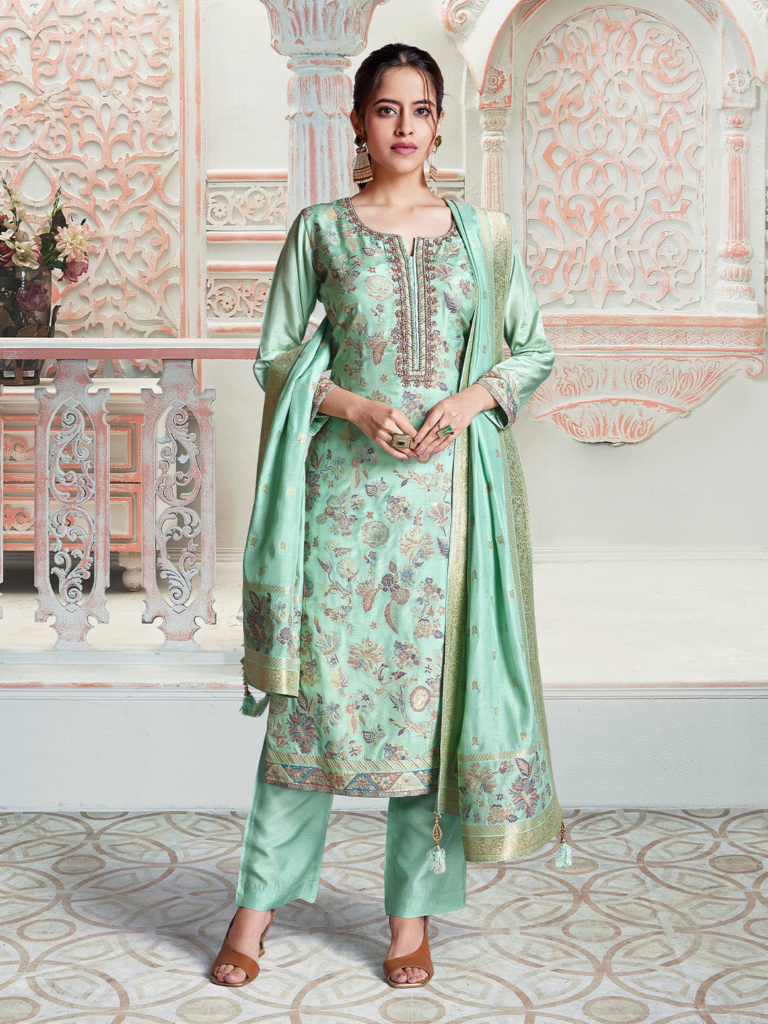 Mint Green Jacquard Suit Set