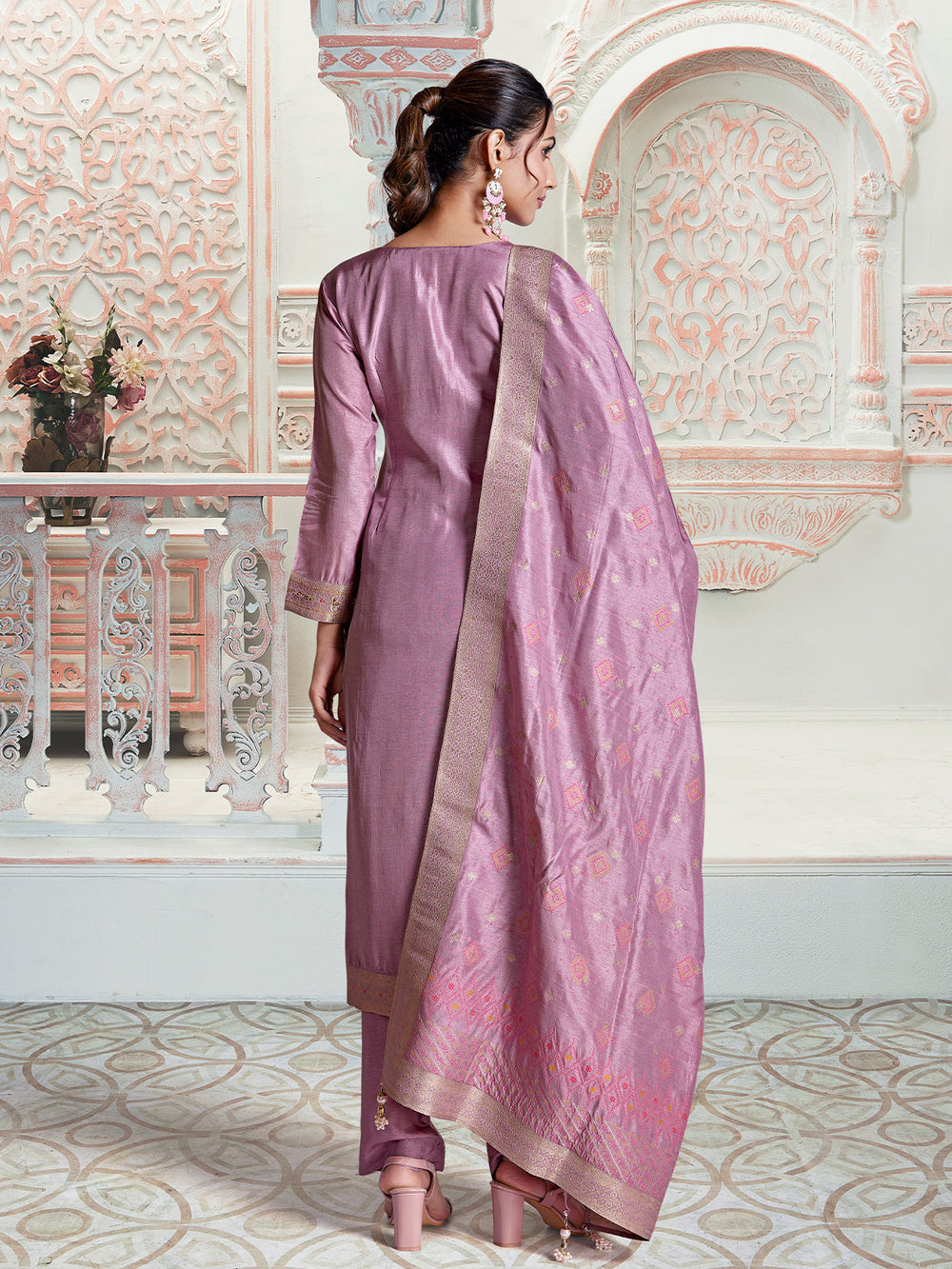 Orchid Pink Jacquard Suit Set