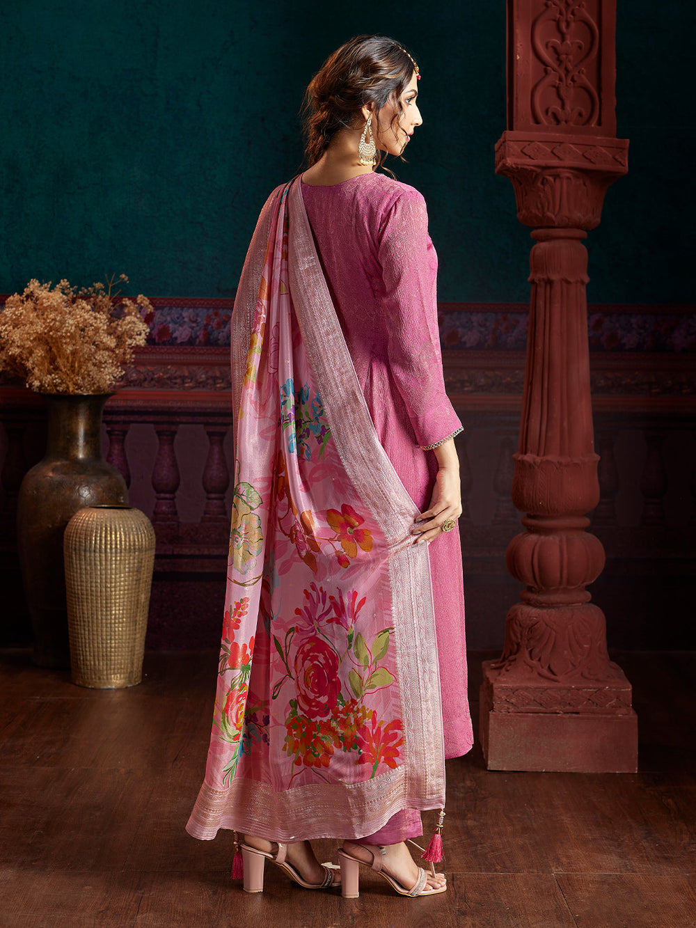 Pink Jacquard Anarkali Set